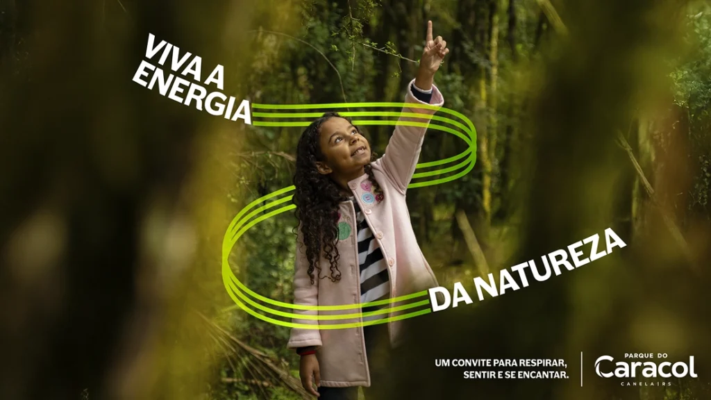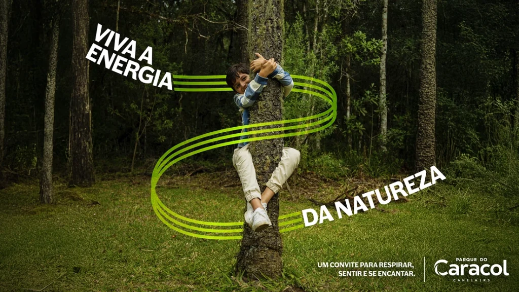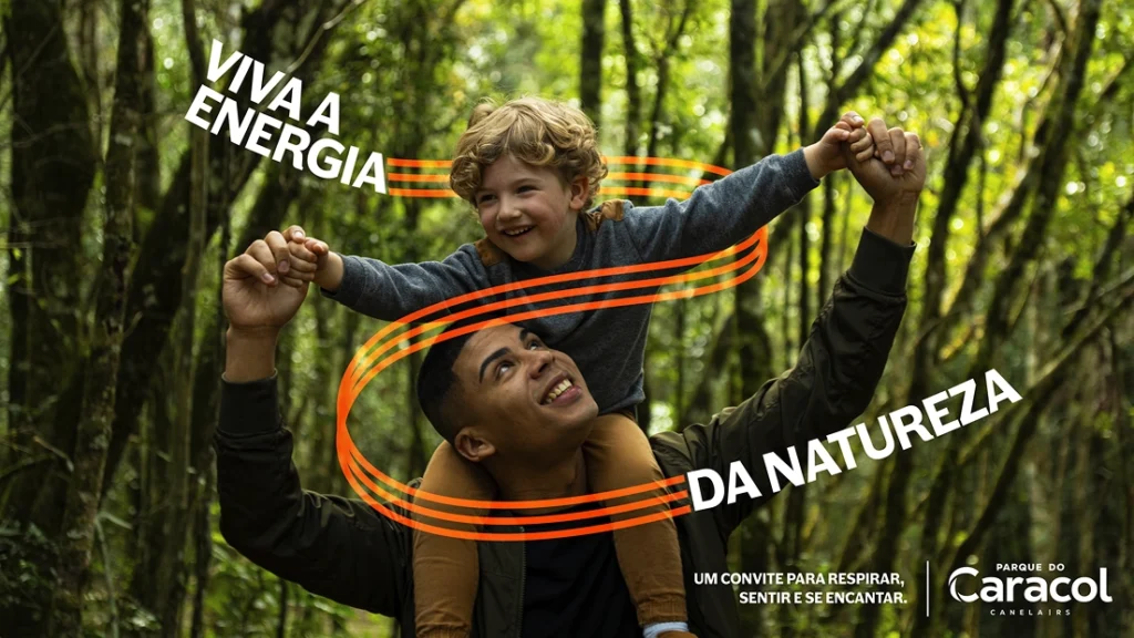 Para lançar o novo mirante do Parque do Caracol, criamos a campanha “Viva a energia da natureza”, um convite para viver uma experiência única na Serra Gaúcha. A comunicação nasce da própria identidade do Parque: linhas que irradiam do “C” do logo, como a energia que brota da mata, das araucárias centenárias, das trilhas históricas e do som da cascata ecoando pela paisagem. Uma campanha que celebra contemplação e aventura, reforçando o Parque como um lugar onde a natureza faz o simples se tornar inesquecível.